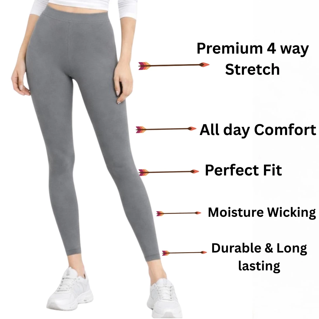 Upgrade your everyday wardrobe with these women’s ankle-length dark grey color leggings, designed for comfort and versatile styling. Made from soft, stretchable, and breathable fabric, they provide a smooth fit while allowing easy movement throughout the day. The elegant dark grey shade offers a modern and classy look, perfect for casual wear, office outfits, or ethnic pairing. Featuring a comfortable elastic waistband, these leggings ensure a secure, non-restrictive fit. Easy to style with kurtis, tunics, tops, or long shirts, they are durable, easy to maintain, and suitable for all seasons. A must-have essential for modern women who value style and comfort.